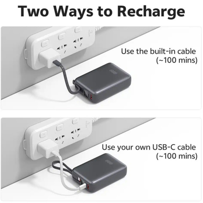 - Rapid Recharging: Supports fast input charging to fully recharge the power bank in around 1 hour 40 minutes.