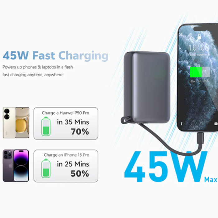 - Fast Charging: The USB-C Port Delivers up to 45W Output for Rapid Device Charging.