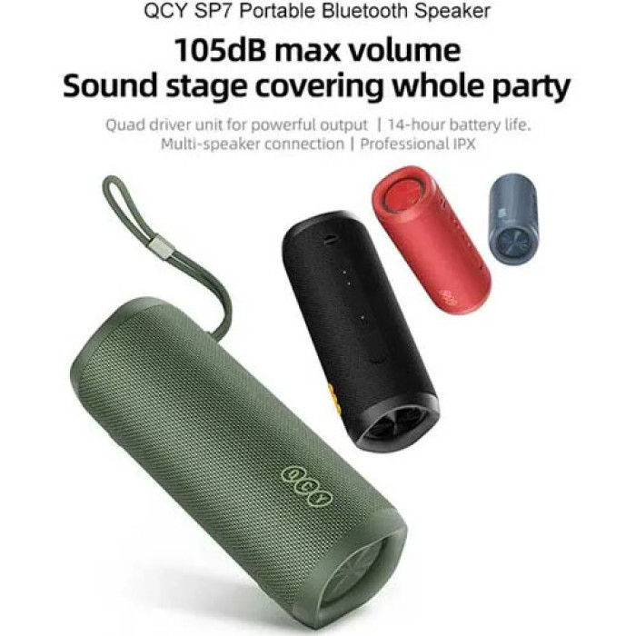 - Experience Premium Sound On The Go With The QCY SP7, An Ultra-Portable Bluetooth Speaker Designed For Music Lovers Who Demand Power, Clarity, And Convenience. This Compact Speaker Delivers 40W Stereo Sound With Bass Enhancement, Ensuring Rich, Immersive Audio Wherever You Are. Whether You’re Indoors Or Outdoors, The QCY SP7 Transforms Any Moment Into A Vibrant Sound Experience.